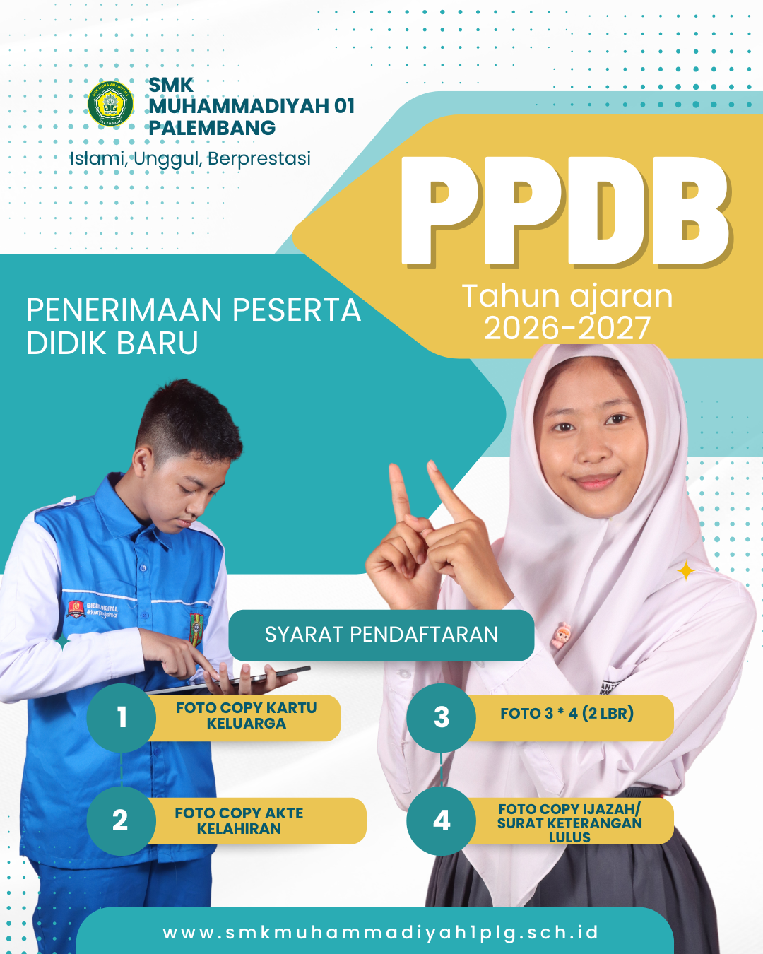 SMK MUHAMMADIYAH 1 PALEMBANG menyediakan PPDB secara online diharapkan proses PPDB dapat berjalan cepat dan bisa dilakukan dimanapun dan kapanpun selama sesi PPDB Online dibuka. SMK MUHAMMADIYAH 1 PALEMBANG.